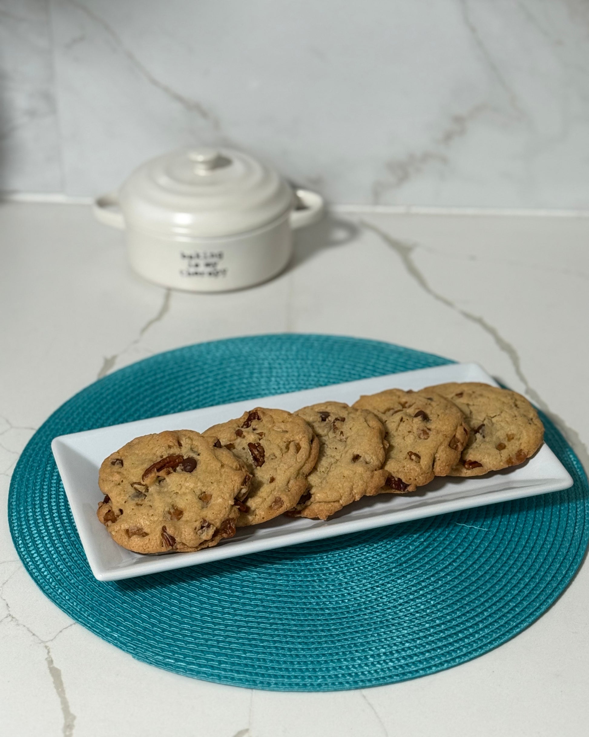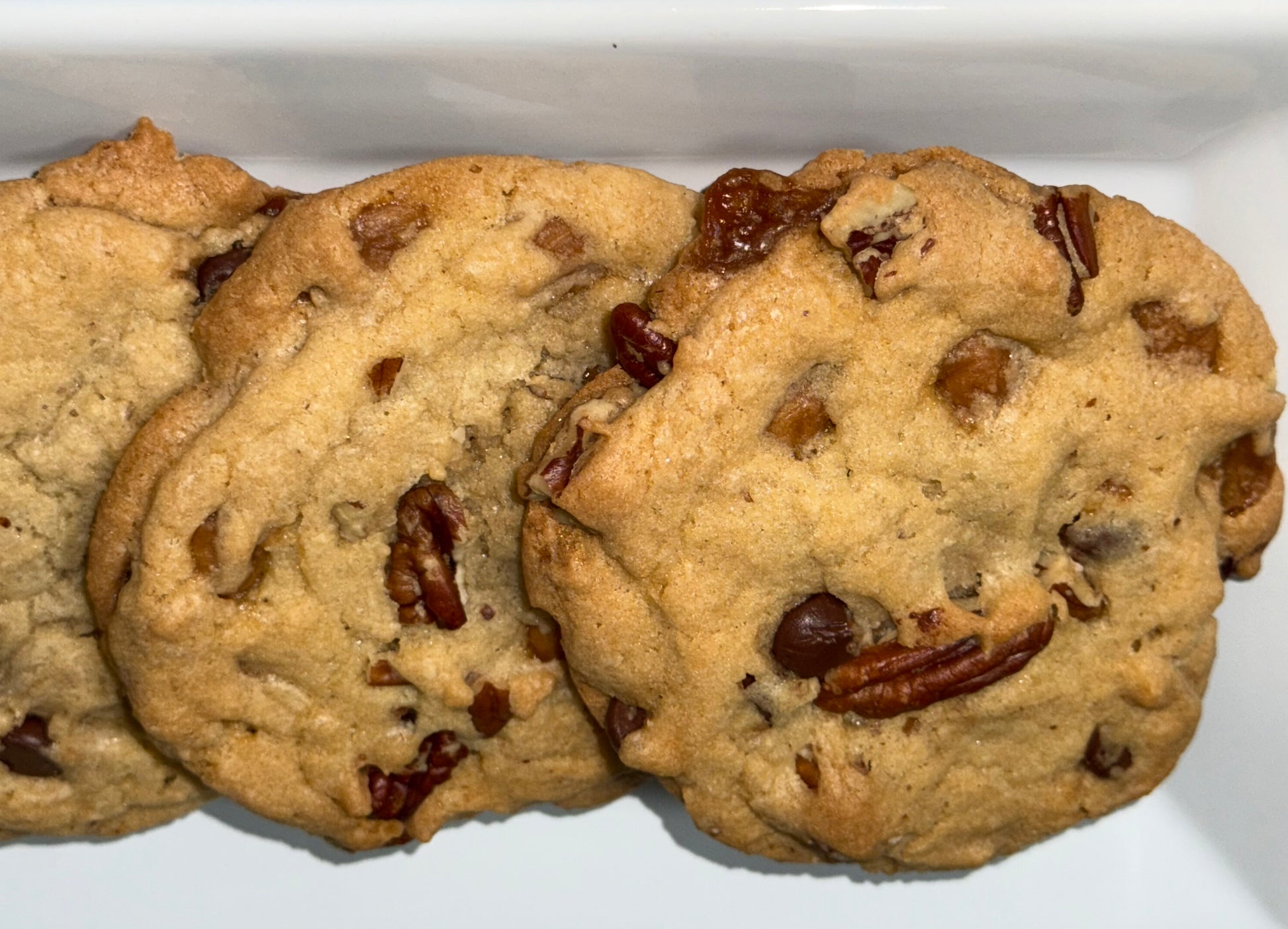 A dozen of our most indulgent cookie filled with semisweet chocolate, caramel and toasted pecans. This is sure to deliver a taste of comfort in every bite.